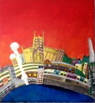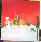 A bit more of the painting done for Newcastle University Choir CD cover – you can see the cathedral now!