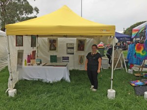 Art Bazaar was held at Warners Bay today for the first time by Hunter Arts Network where I had a stall to sell my paintings. Despite an overnight drenching and almost gale force winds, the weather calmed down and the event went ahead. We had a very overcast day but we still managed to attract a great crowd which was constant for most of the event, although we had to pack up one hour early when the weather suddenly turned again. There were almost 60 artisan stalls at the market and I had a pleasing result with two of my paintings being sold. For more information about the event visitย http://hunterartsnetwork.org/