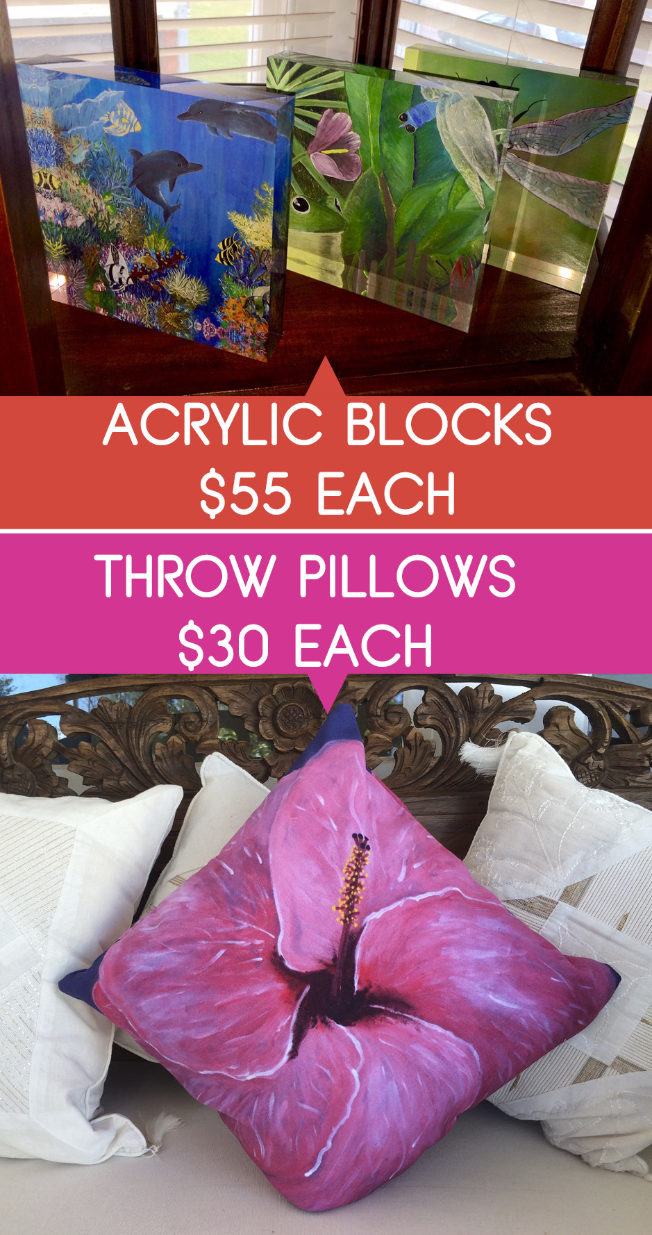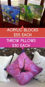 Throw pillows and Acrylic blocks at Art Bazaar Pop Up August 2017