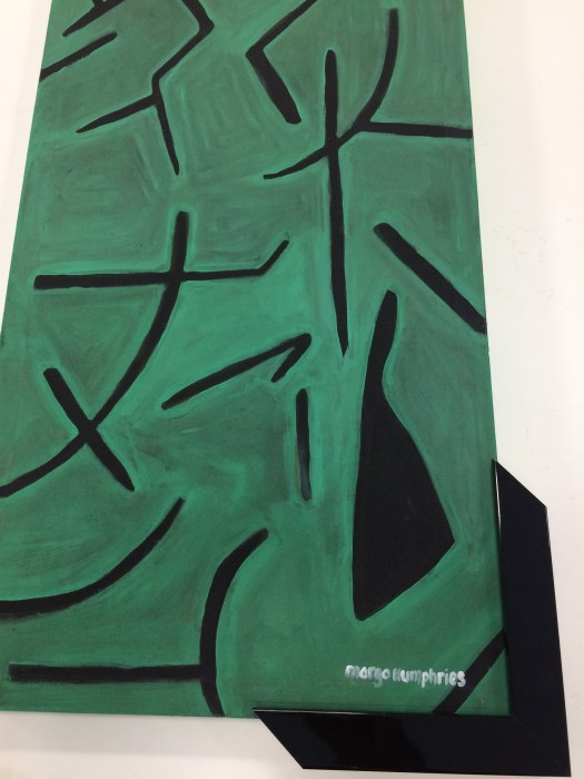 My “She Nudged Him Back” painting is going to a new home next month! This is the black matt frame my happy customer and I agreed on for my acrylic on canvas artwork ππ We initially thought gloss black would look best but the matt suited this painting better.
