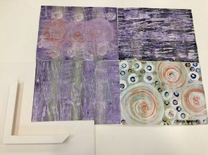 Five of my artworks for sale in the gallery at Picture Point Framing and Art@theBay Studio & Gallery!