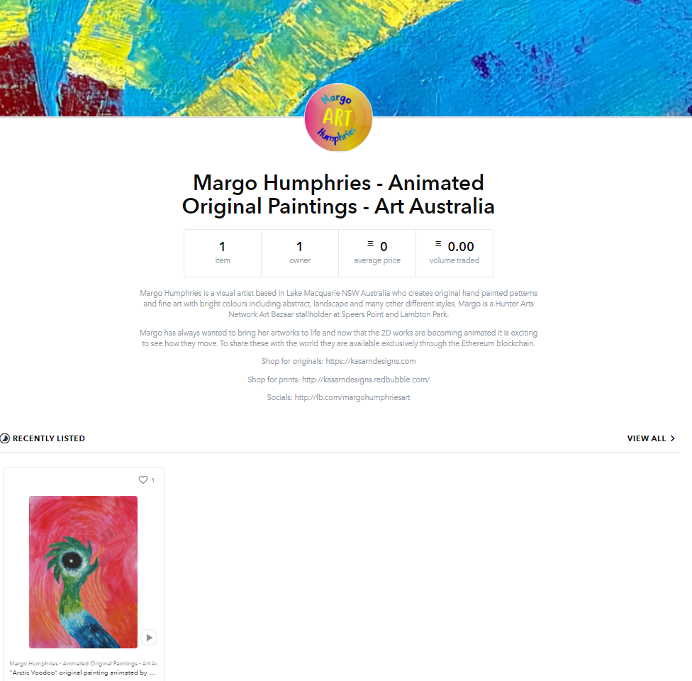 Margo Humphries has always wanted to bring her artworks to life and now that her 2D works are becoming animated it is exciting to see how they move. To share these with the world they will be available exclusively through the Ethereum blockchain.