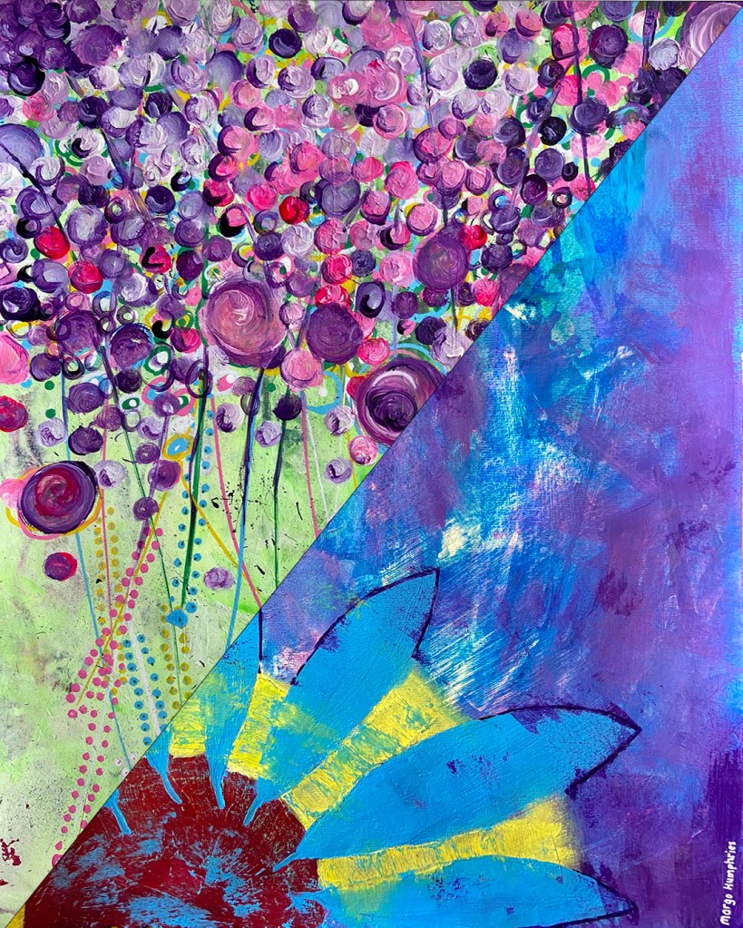 “Wisteria” $120.00 acrylic and paint pens on paper unframed