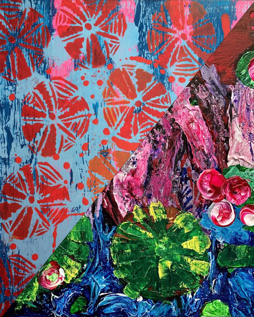 These are all of my original works. I have had a bit of fun creating these mash-ups and they seem to have worked well and brought out some similar elements which I didn’t realise until I paired them up!