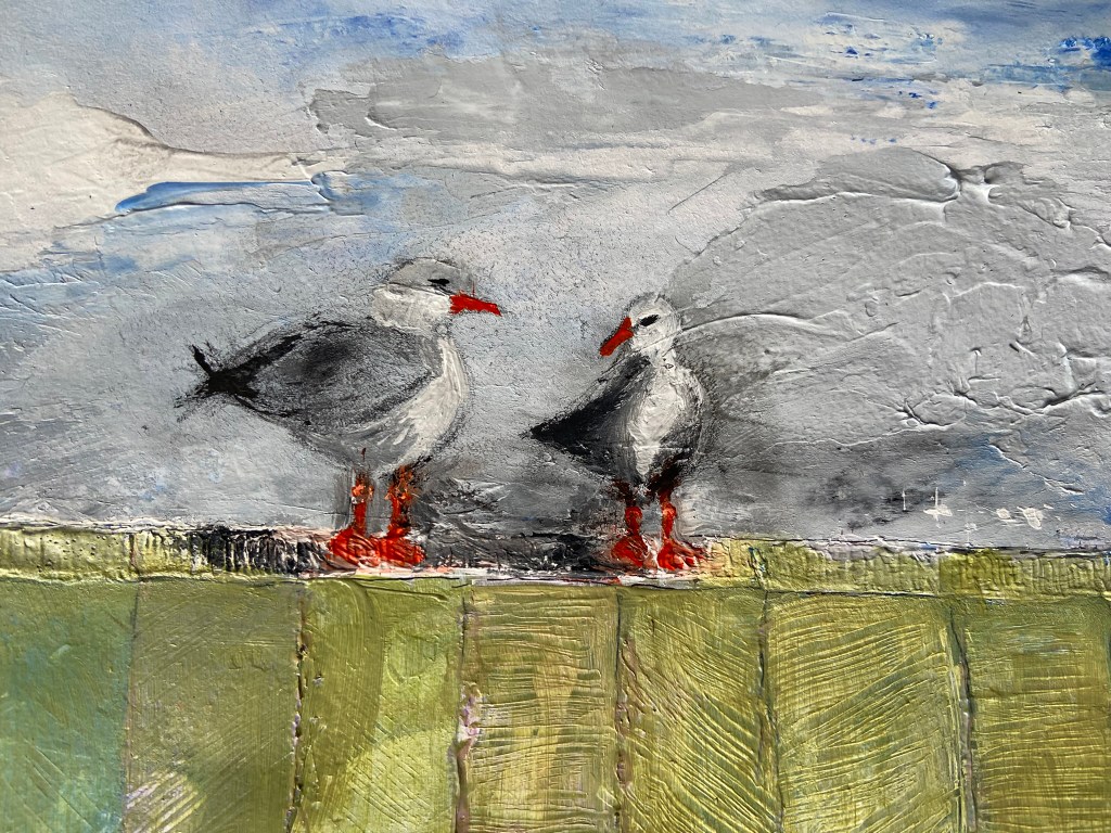 “At the baths”, Original painting by Margo Humphries, acrylic on paper, A3 unframed $100.00