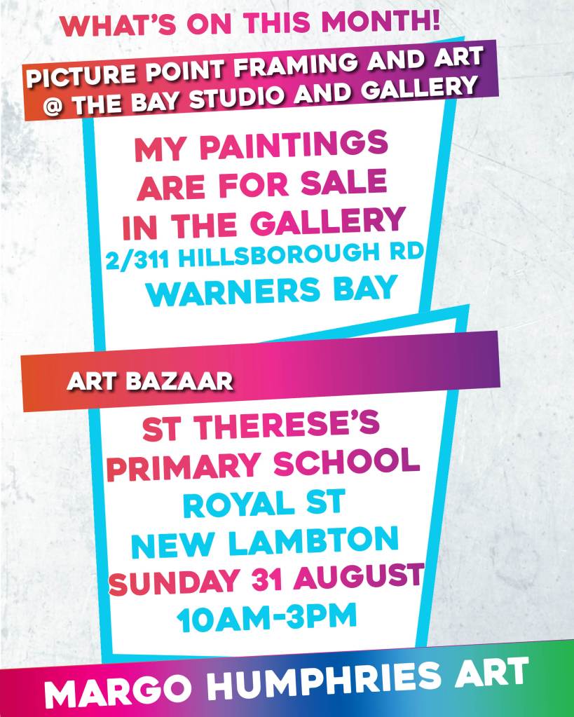 I now have paintings for sale at Picture Point Framing and Art @ the Bay Studio and Gallery