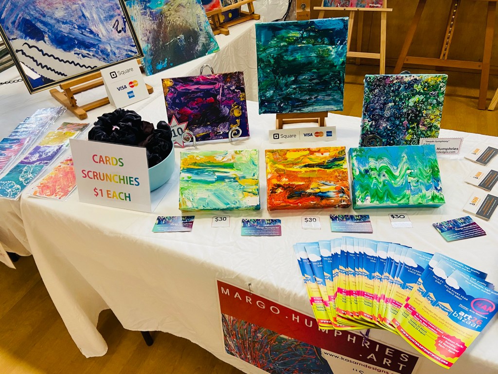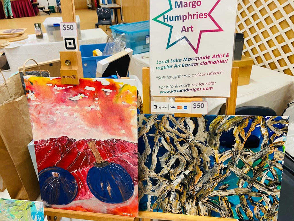 We were very pleased to have another successful Art Bazaar today at St Therese’s New Lambton. After a sudden downpour and heavy rain this morning which was replaced with blue skies just before we officially started. It was great to see the hall full of stallholders who are all local and approved by Hunter Arts Network for their originality, quality and creativity. The food, coffee and entertainment added to the enjoyment by the constant large crowds coming through. Our new 2pm finish time which we needed to change to was praised among stallholders as well. Our next Art Bazaar will be held here again in August.
