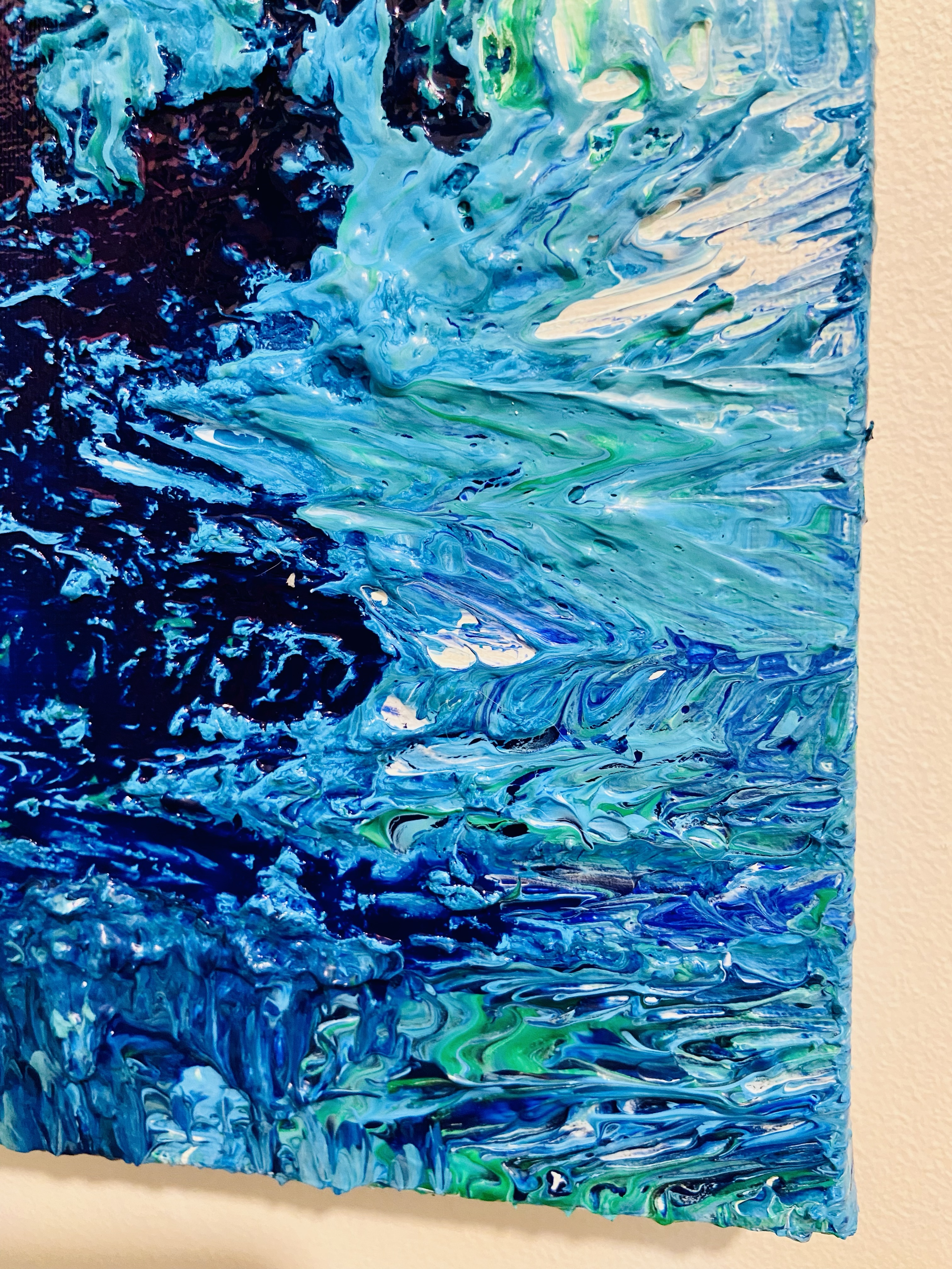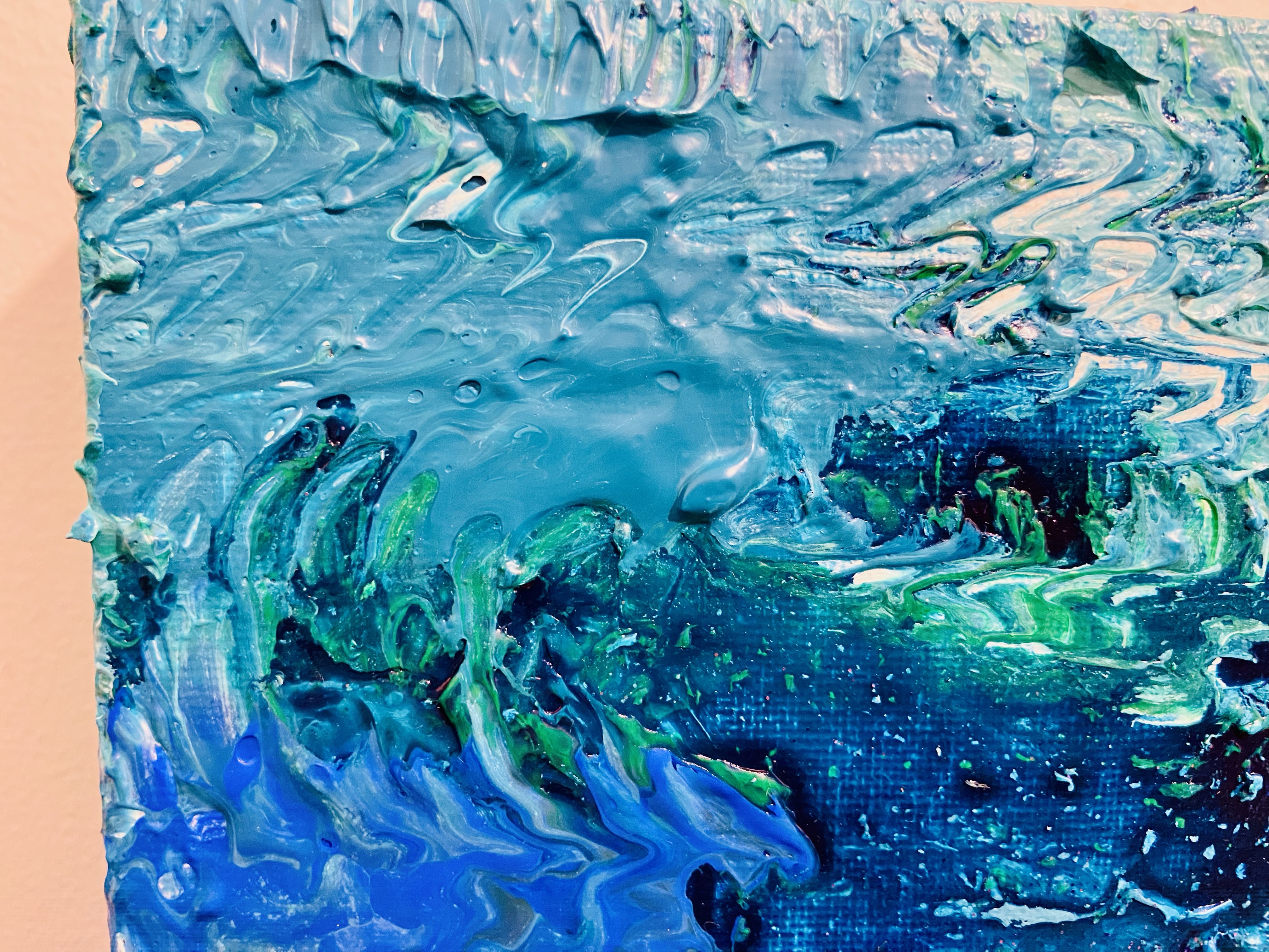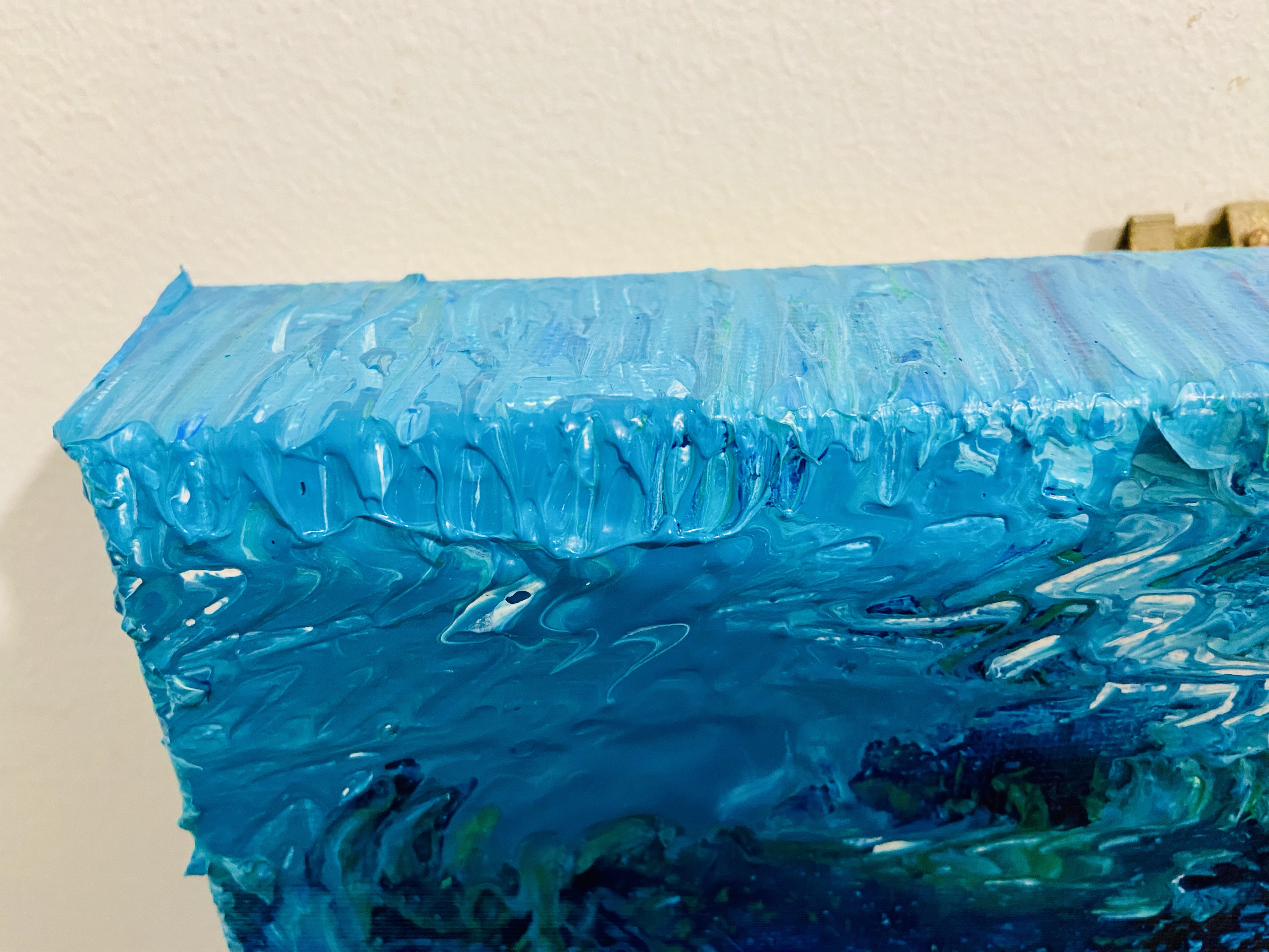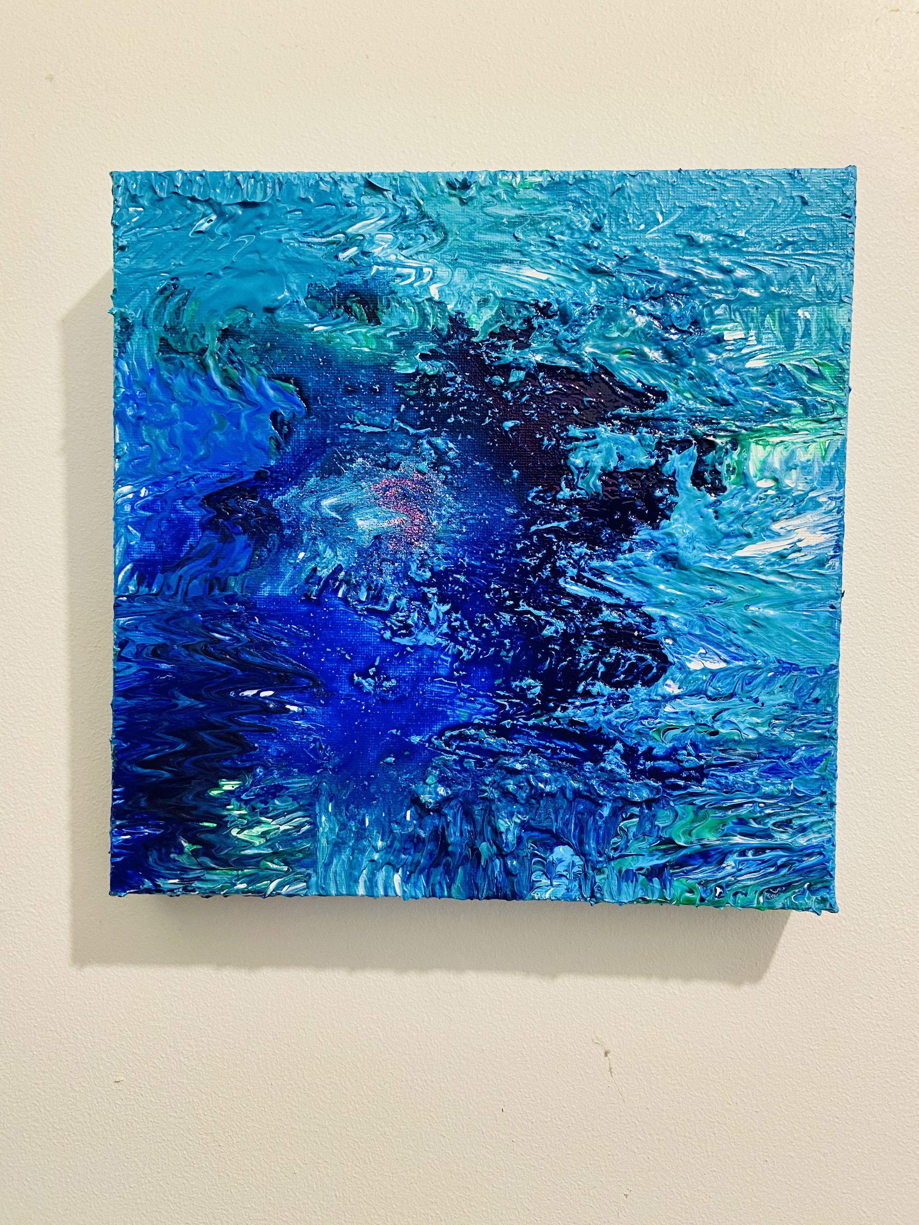 Ready to hang, acrylic and acrylic ink, 25.4×25.4×3.5cm $80.00