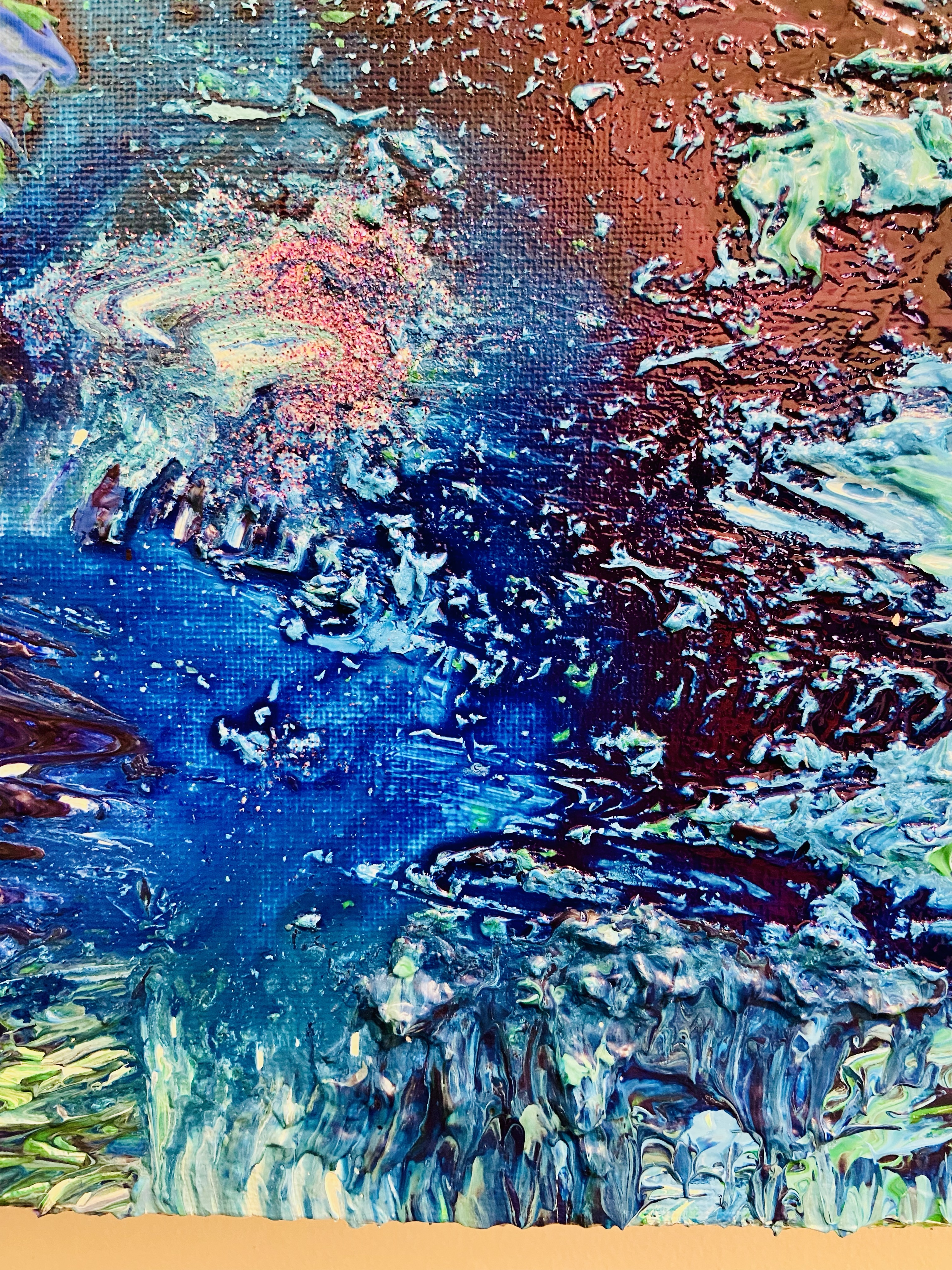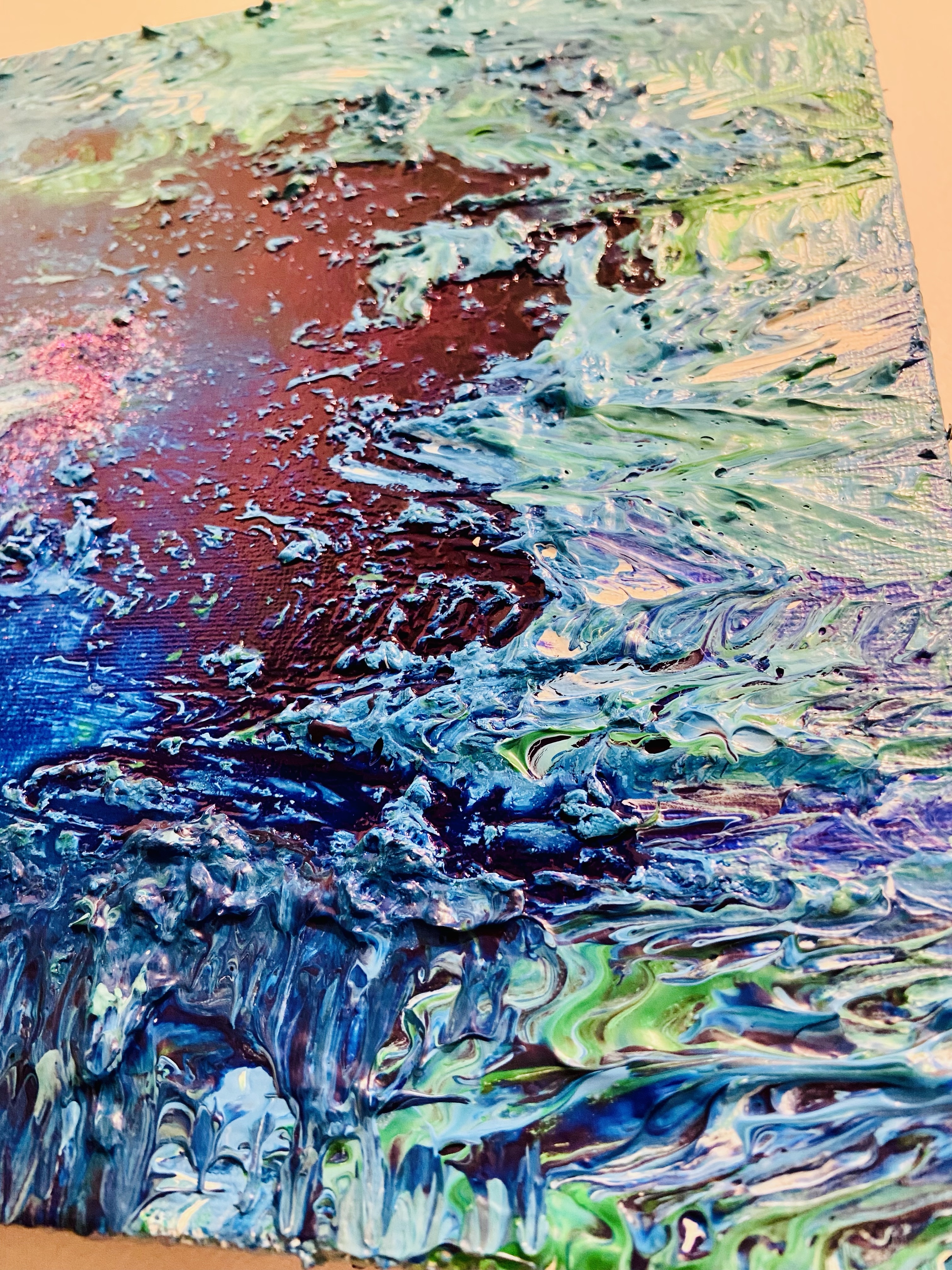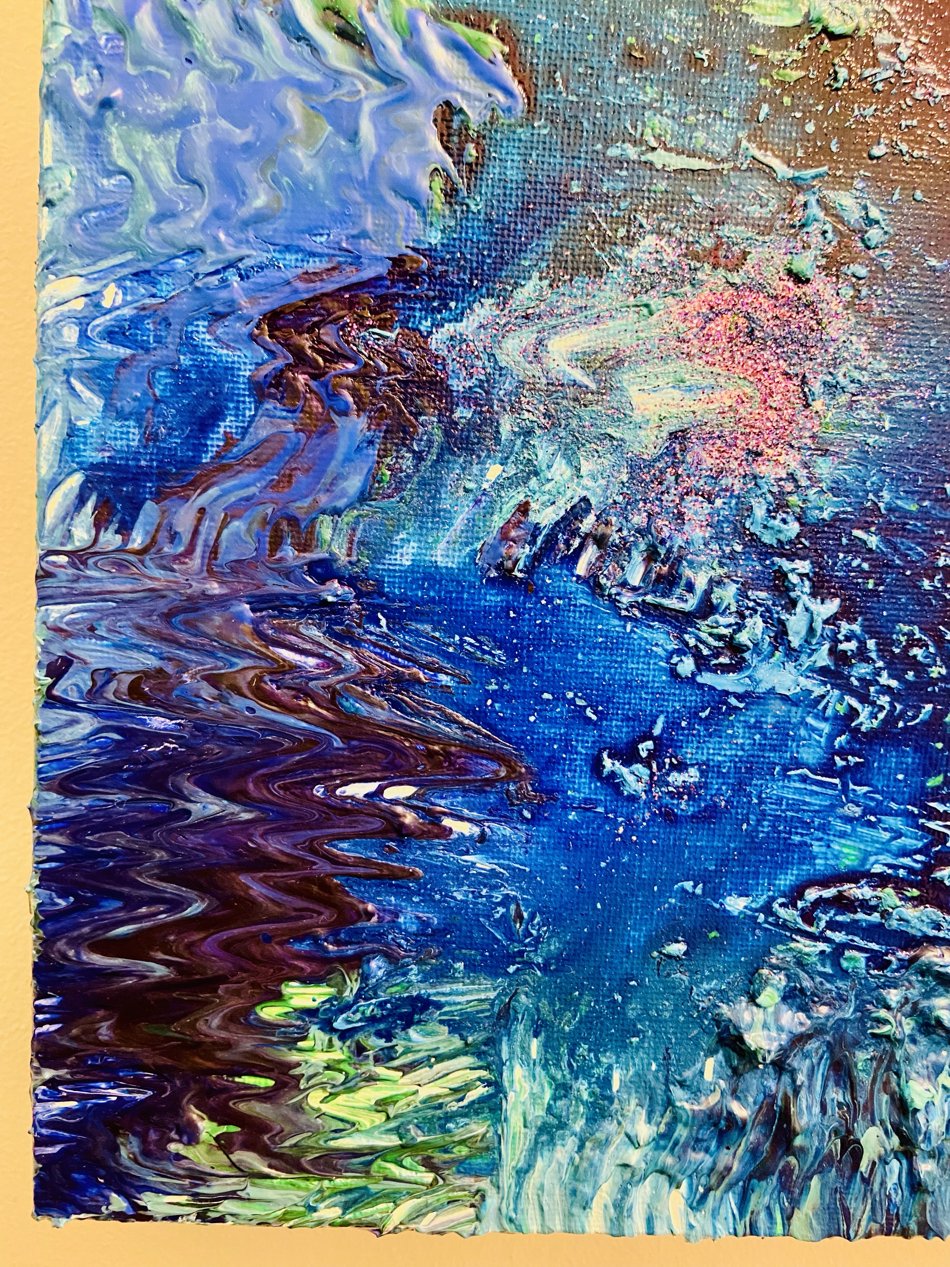 I’ve just finished these two new paintings. Each painting is 15cmx20cmx4cm, ready to hang, acrylic ink, glitter paint and acrylic on canvas