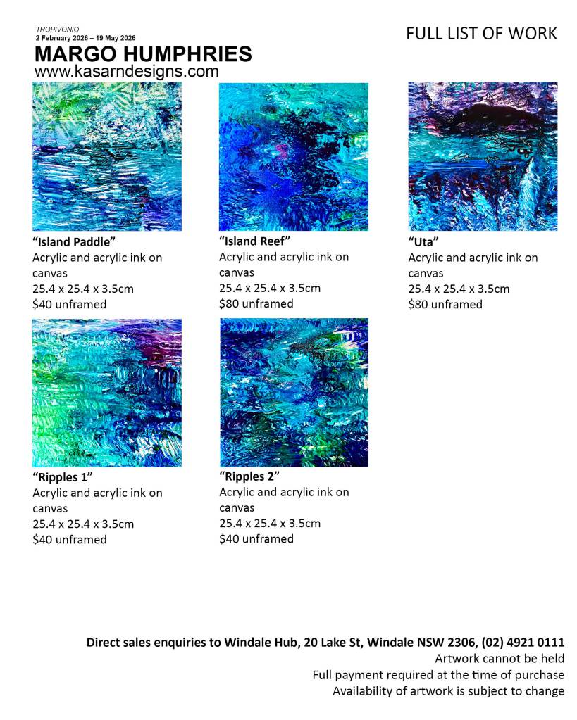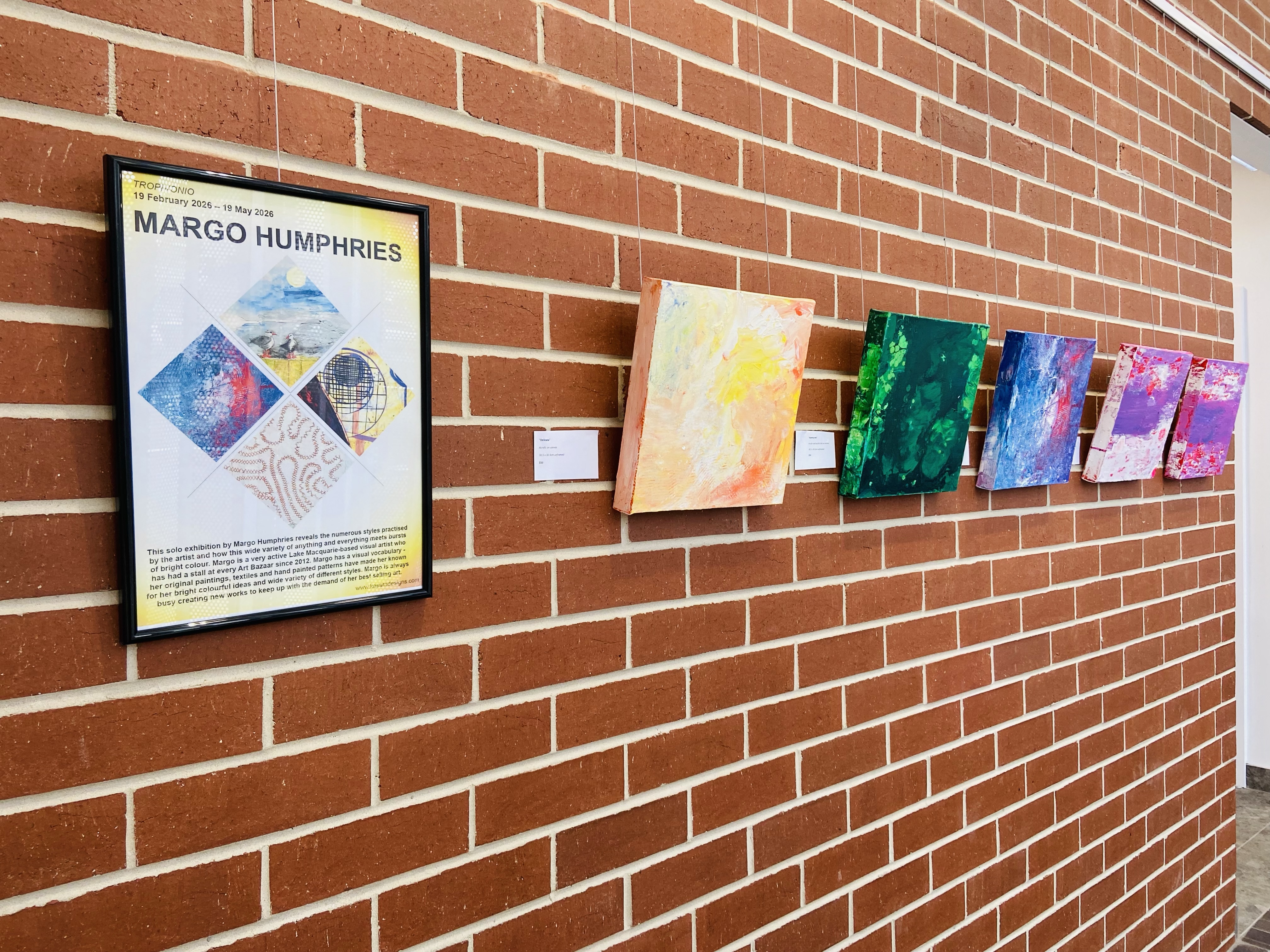 Solo exhibition “Tropivonio” – original paintings by Margo Humphries at Windale Hub