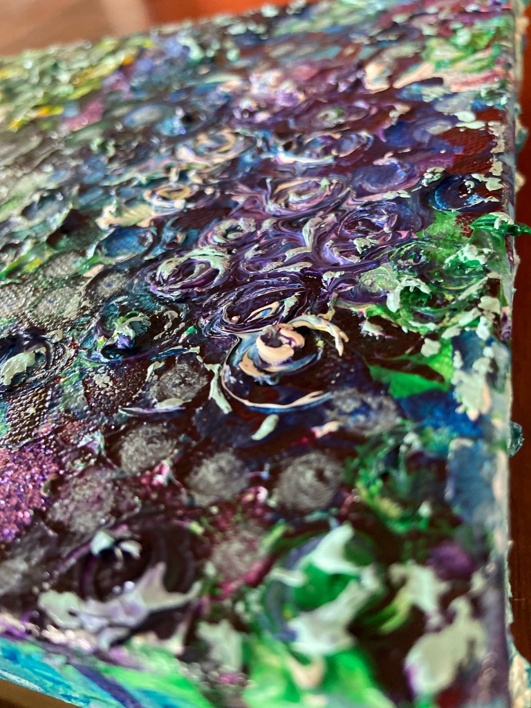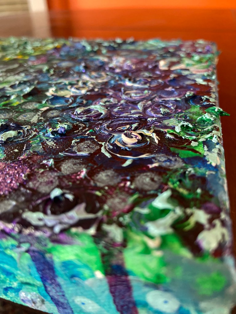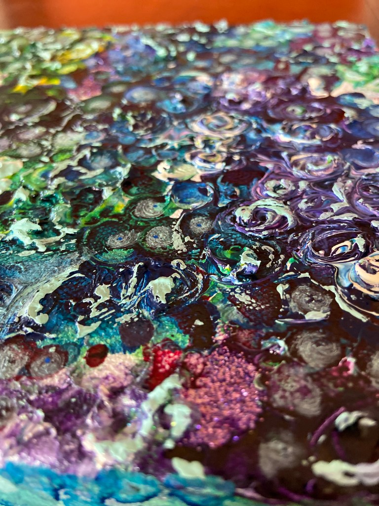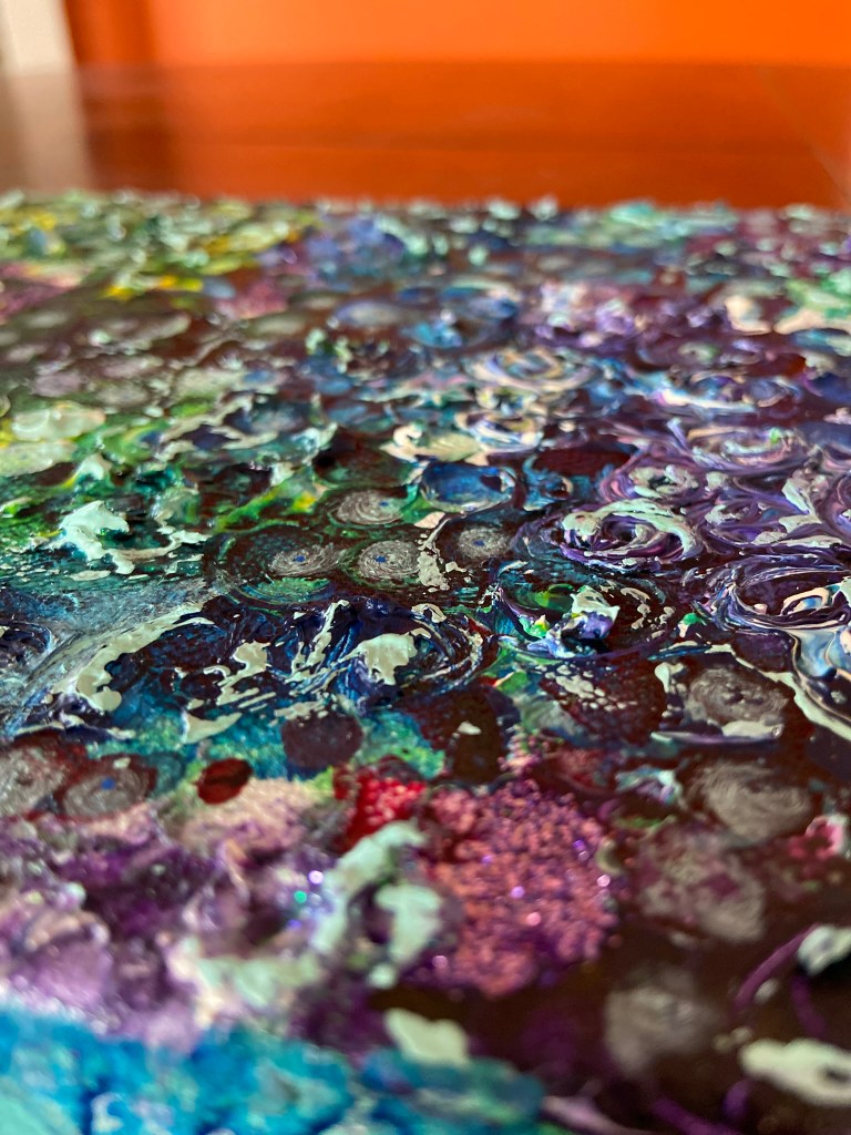 My painting is acrylic, acrylic ink and glitter