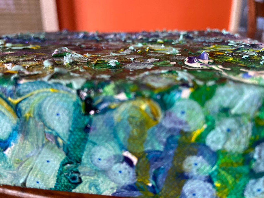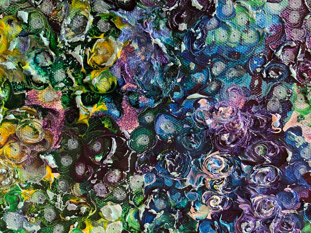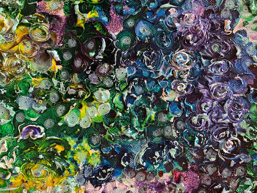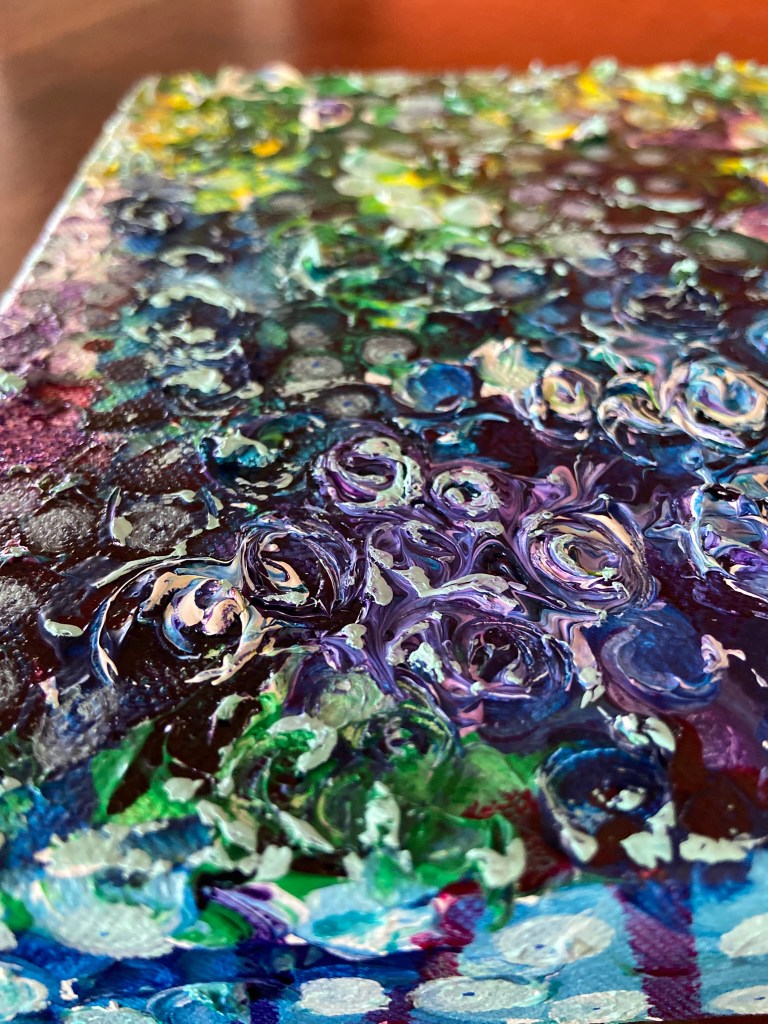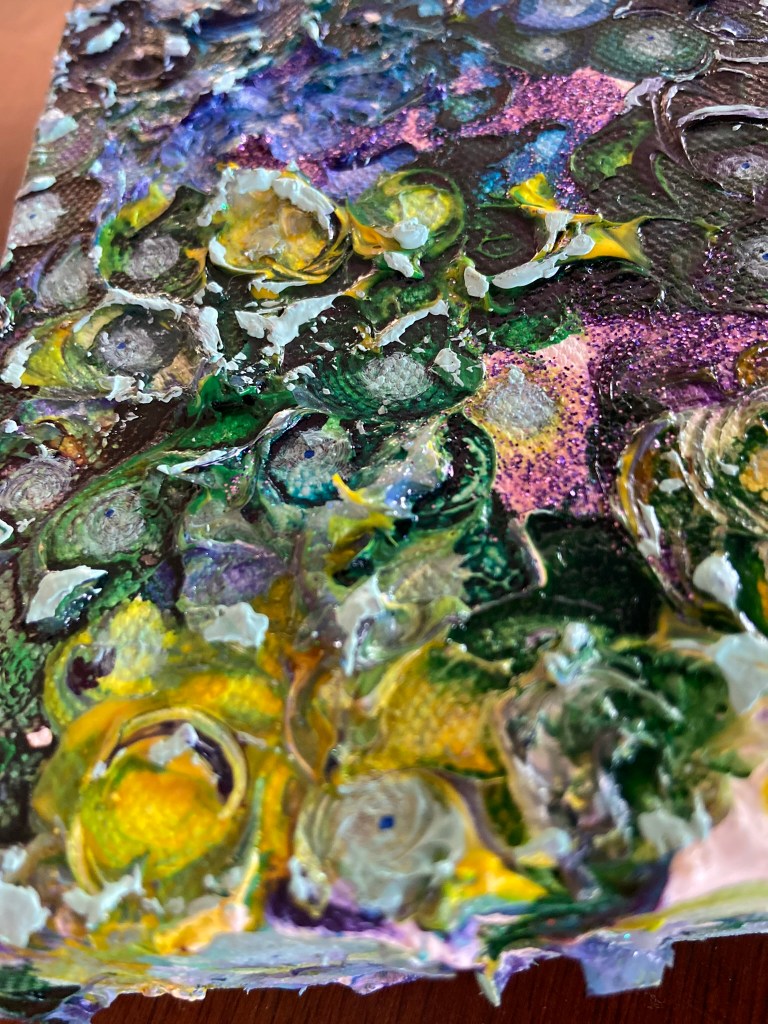 My painting is acrylic, acrylic ink and glitter