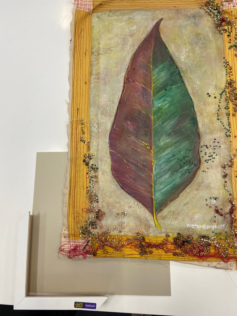 I’ve just finished this new artwork, “Gumleaf textile”, mixed media (painting and sewing) framed $250.00. Enquiries margo@kasarndesigns.com